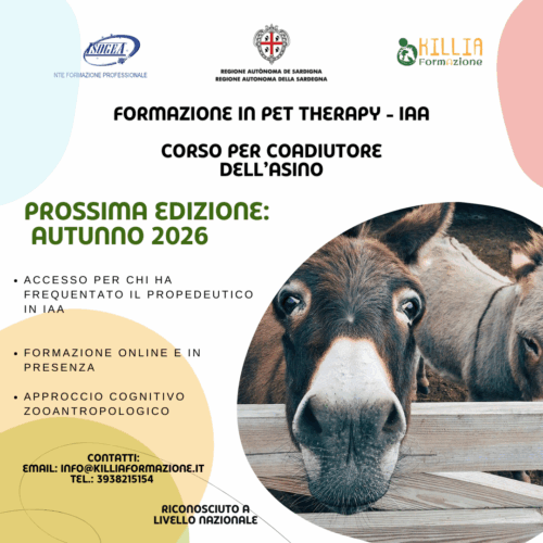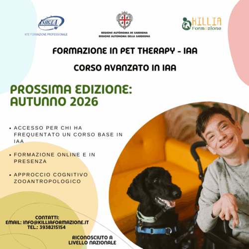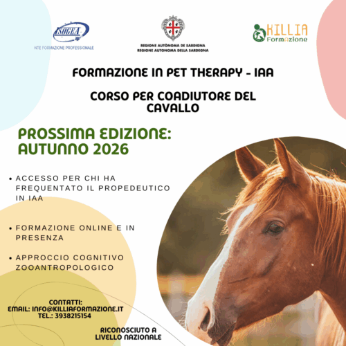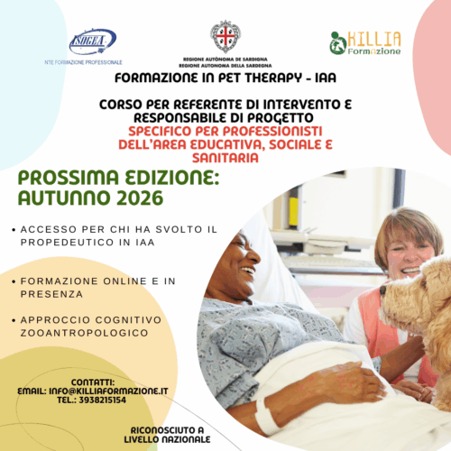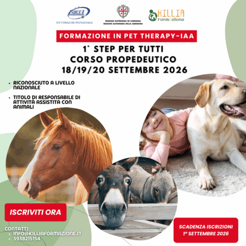 🐾 Aperte le iscrizioni per il Corso Propedeutico in Pet Therapy a Cagliari La Cooperativa Sociale Killia, da anni attiva negli Interventi Assistiti con Animali (IAA), presenta il Corso Propedeutico in Pet Therapy, riconosciuto ai sensi dell’Accordo Stato-Regioni 60/CSR del 25 marzo 2015 e della normativa regionale vigente. 👉 Il percorso formativo rappresenta il primo…